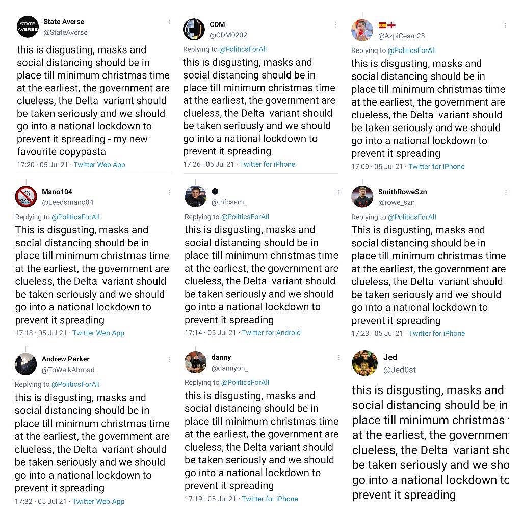 This morning, all the mindless zombies dutifully standing 6 feet apart, outside the school gates, in your face nappies who watched 70k strangers shouting and singing for hours in a confined space but can’t watch your kids in the school play tomorrow? You are part of the problem.